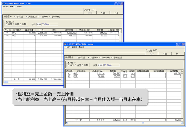 粗利益に加え、会計上の「売上総利益」の管理・把握が可能
